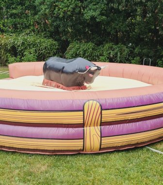Foto e allestimenti per noleggio toro meccanico per eventi in tutta Italia.
